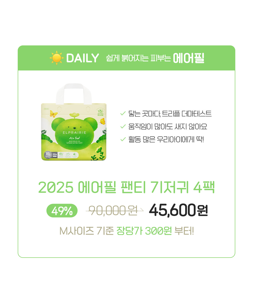 [특별할인]2025 낮밤 팬티 기저귀 4팩(에어필 3팩+에어윙 1팩/사이즈 선택)