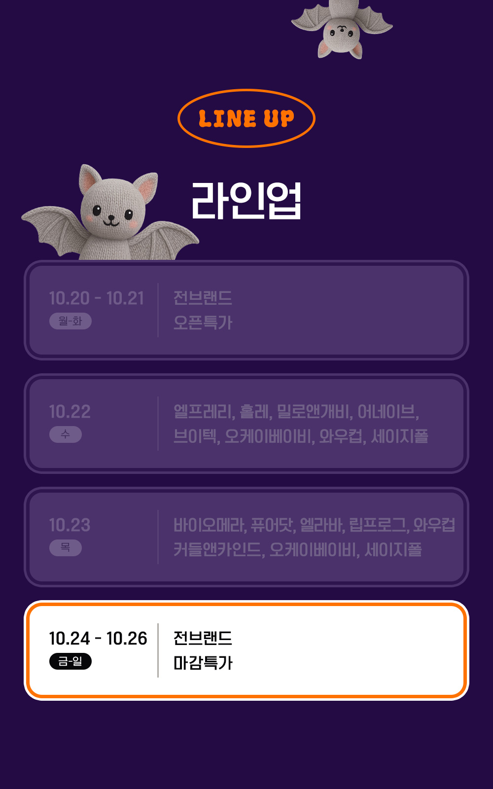 - (10.24(금) 쿠폰 다운 받은 경우에도 10.26(일) 23:59까지 사용가능)