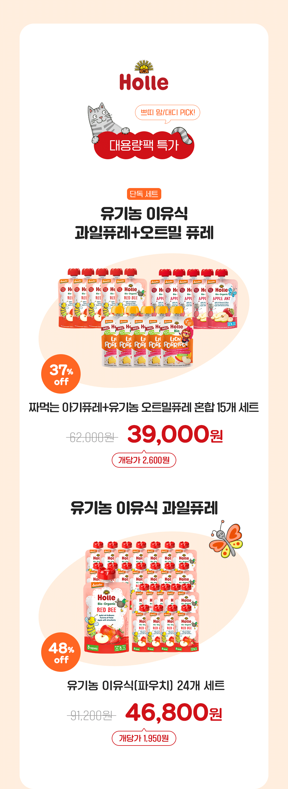 [특별할인]짜먹는 아기퓨레 유기농 이유식(파우치/과일퓨레)-레드비 24개세트