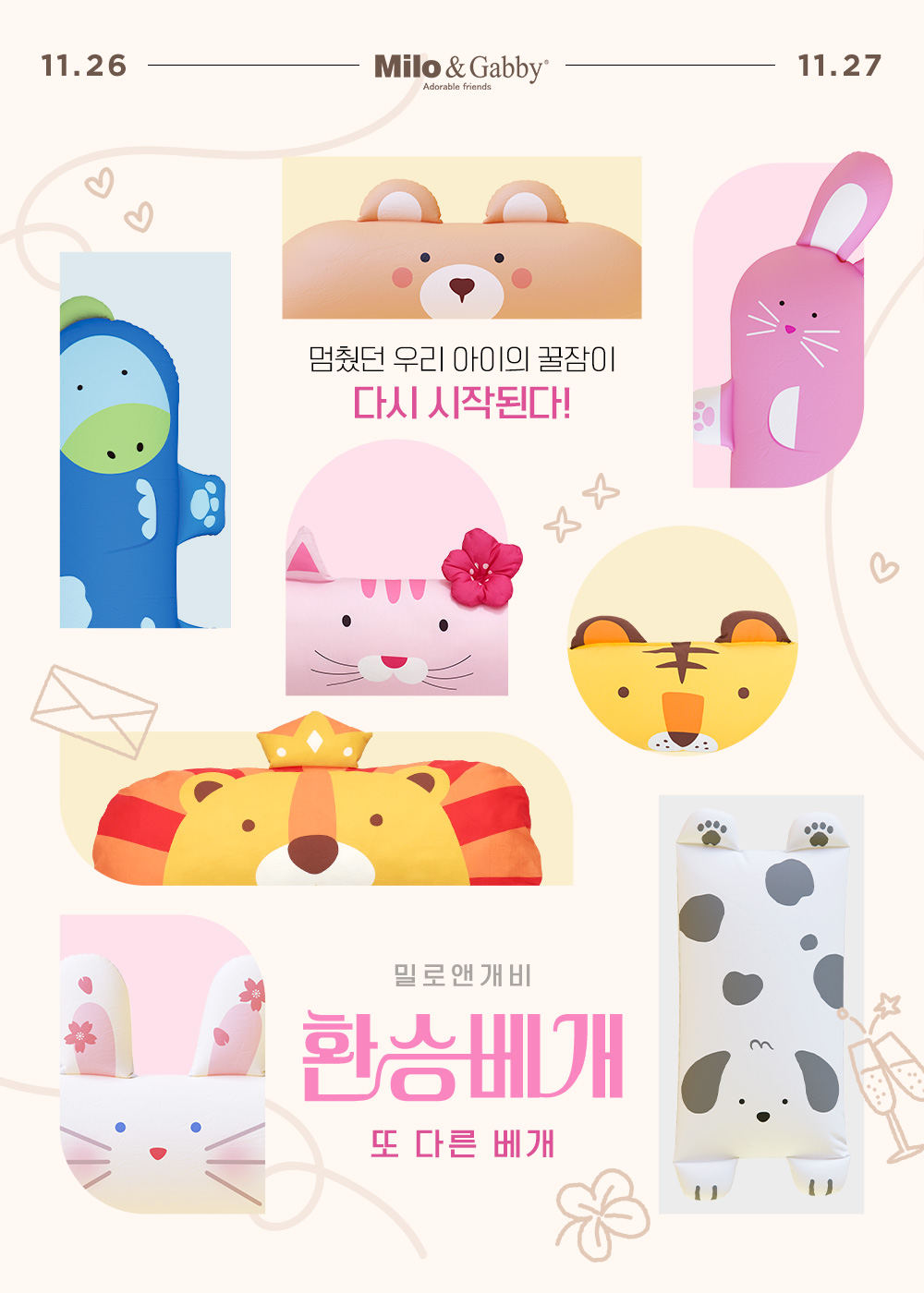 [특별할인]베개 패밀리 세트-블라썸 라라(동물/미니/롱/솜포함)