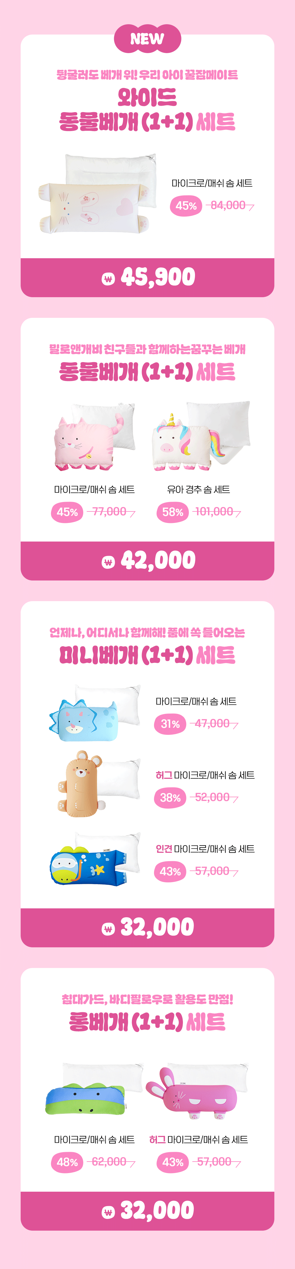 [특별할인]베개 패밀리 세트-로라(동물/미니/롱/솜포함)