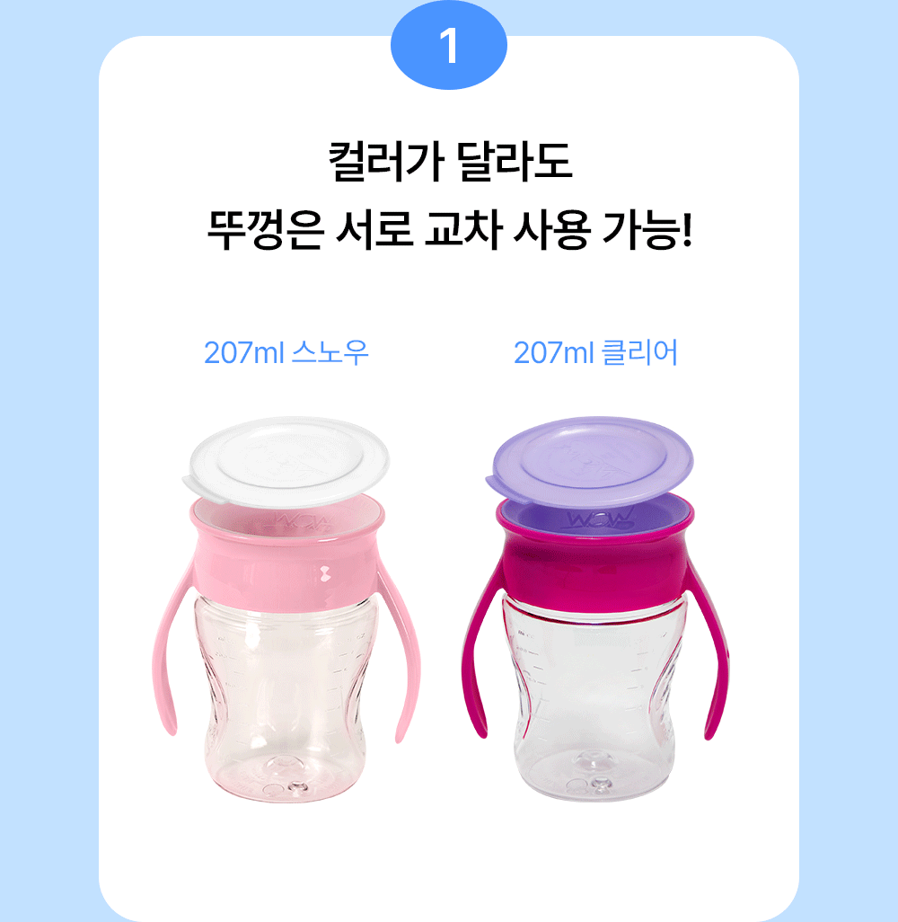 [특별할인]빨대컵 트라이탄 2개세트 207ml (스노우) 흘림방지 자기주도 아기컵 어린이집 (뚜껑포함)