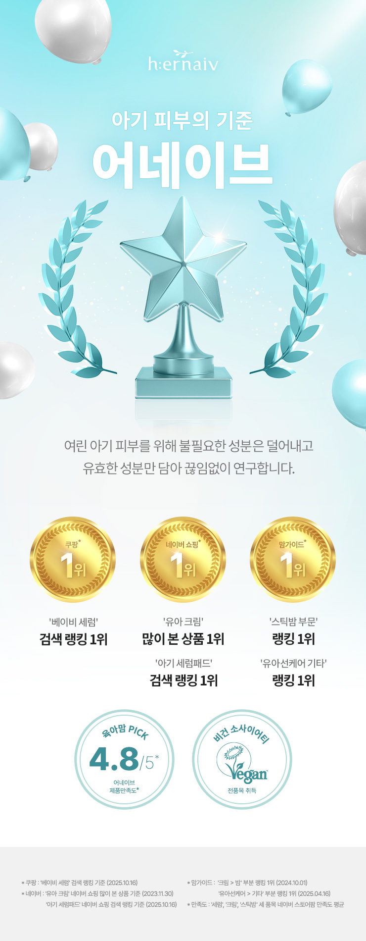 [🍀솔루션위크 혜택! 어네이브 50,000원 이상 구매 시 베이비로션 증정🍀]
