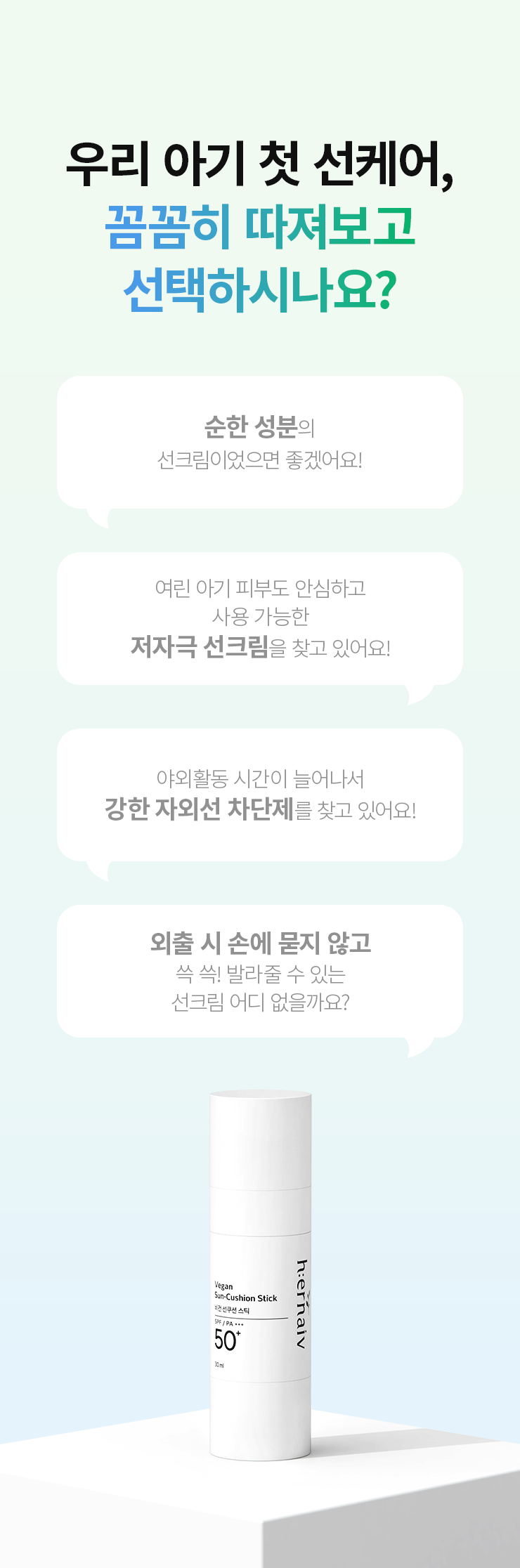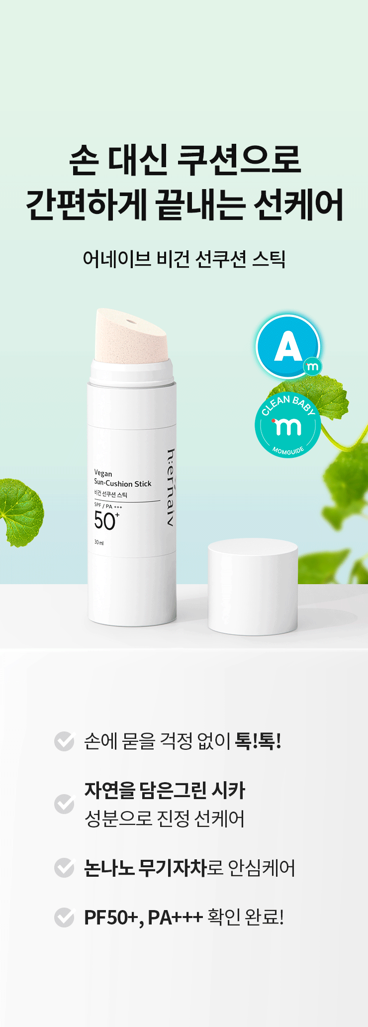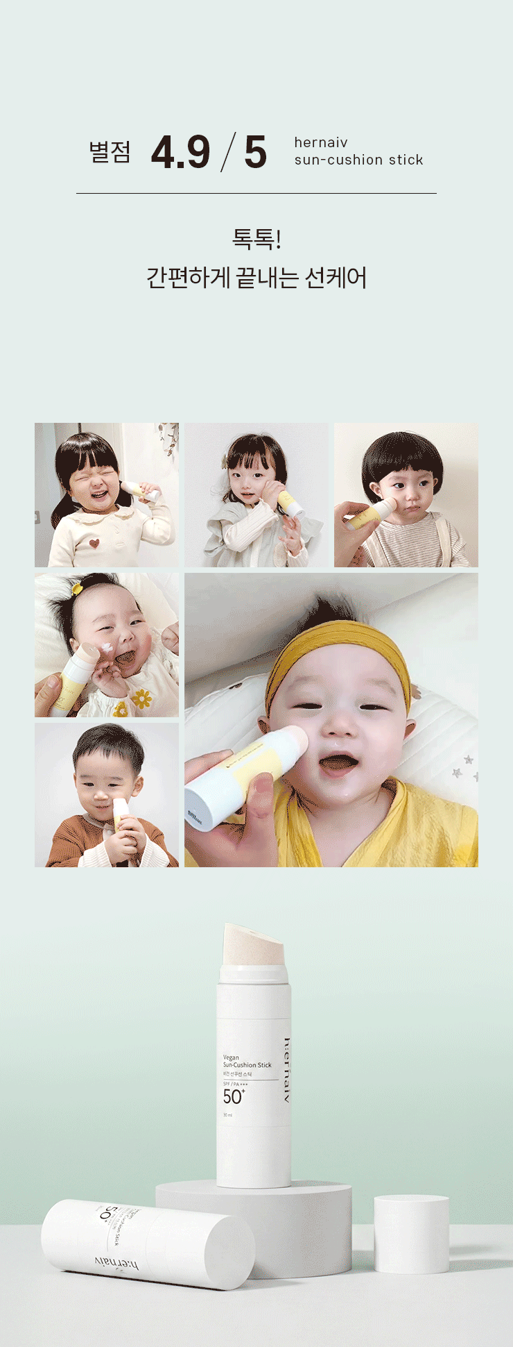 [특별할인]비건 선쿠션 스틱 무기자차 아기 유아 선크림 SPF50+ 30ml*4