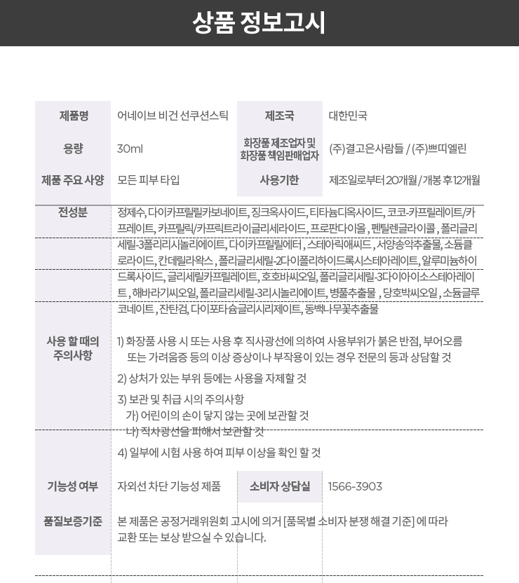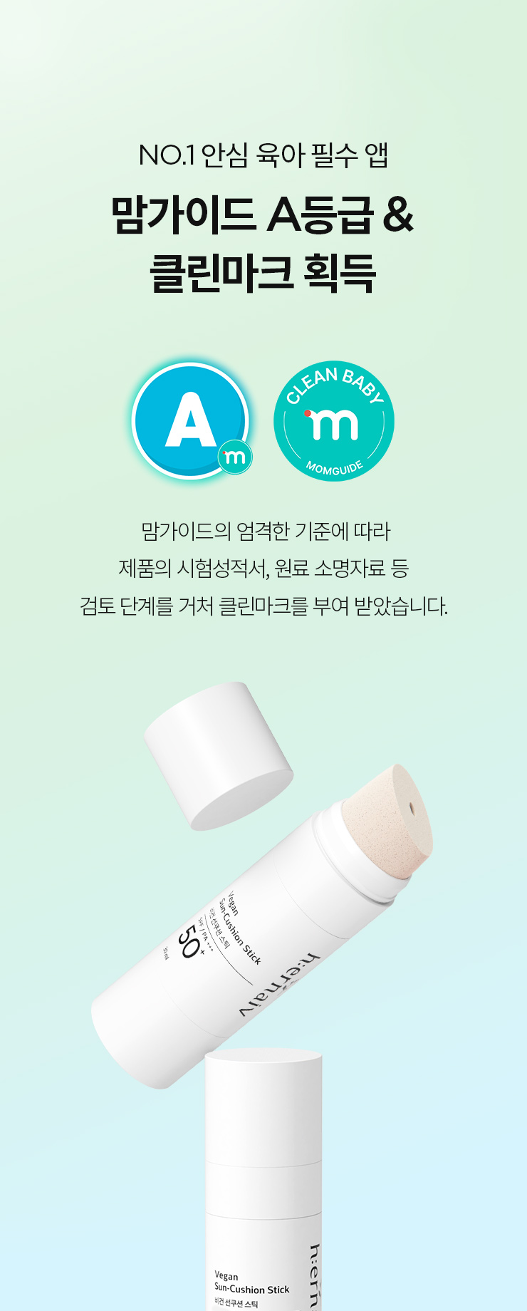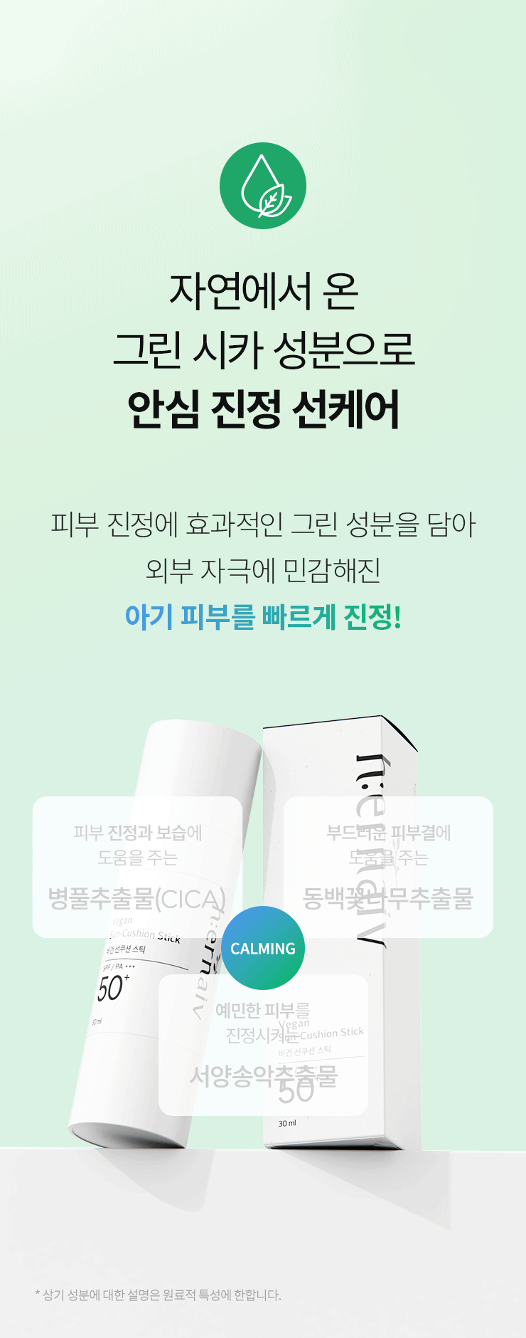 [특별할인]비건 선쿠션 스틱 무기자차 아기 유아 선크림 SPF50+ 30ml*4